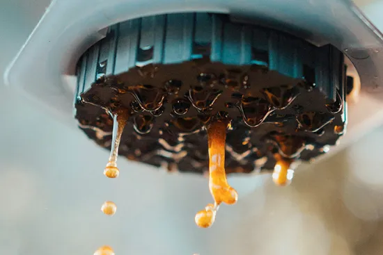 6. Bez použití síly plynule přetlačíme kávu do hrnečku/konvičky (cca 30 sekund).