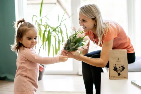Pro máj, lásky čas, jsme si připravili limitovanou edici Upraženo zrnkové kávy – Láskyplnou směs. A jelikož kromě lásky partnerské, máme i lásku mateřskou, věříme, že právě tato směs plná sladkých tónů udělá mamince radost. Prodáváme ji v 250gramovém balení a můžeme vám ji dárkově zabalit. V Láskyplné směsi najdete kombinaci káv z Brazílie a Peru a v chuti objevíte čokoládu, oříšky, jablka a švestky. A proč věnovat zrovna kávu? Celý život nám maminka energii dávala, nyní ji energii můžeme vrátit :)