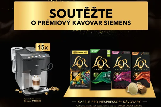 Soutěžte s kávou L'OR, kterou můžete koupit zde, o prémiový plnoautomatický kávovar Siemens! Stačí koupit alespoň dva jakékoliv produkty L'OR, zaregistrovat svou účtenku a čekat, až se na vás usměje štěstí! Čas máte až do 9. května 2021. Pravidla soutěže najdete na tomto odkaze.