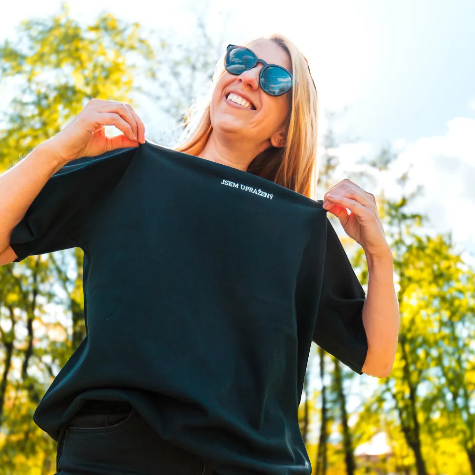 Unisex oversize tričko s výšivkou „Jsem Upražený“ je pro všechny, kteří to s kávou berou vážně, ale zároveň s nadhledem. Volnější střih zajišťuje maximální pohodlí a ležérní styl, který si vezmete kamkoliv.