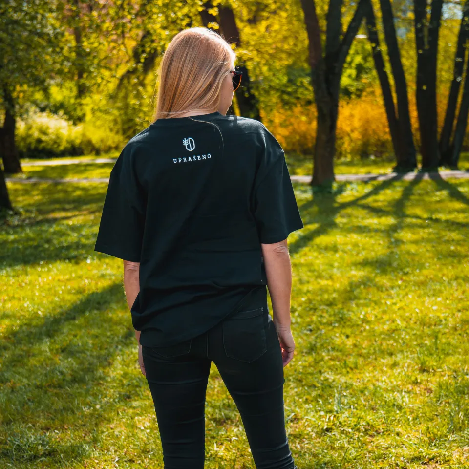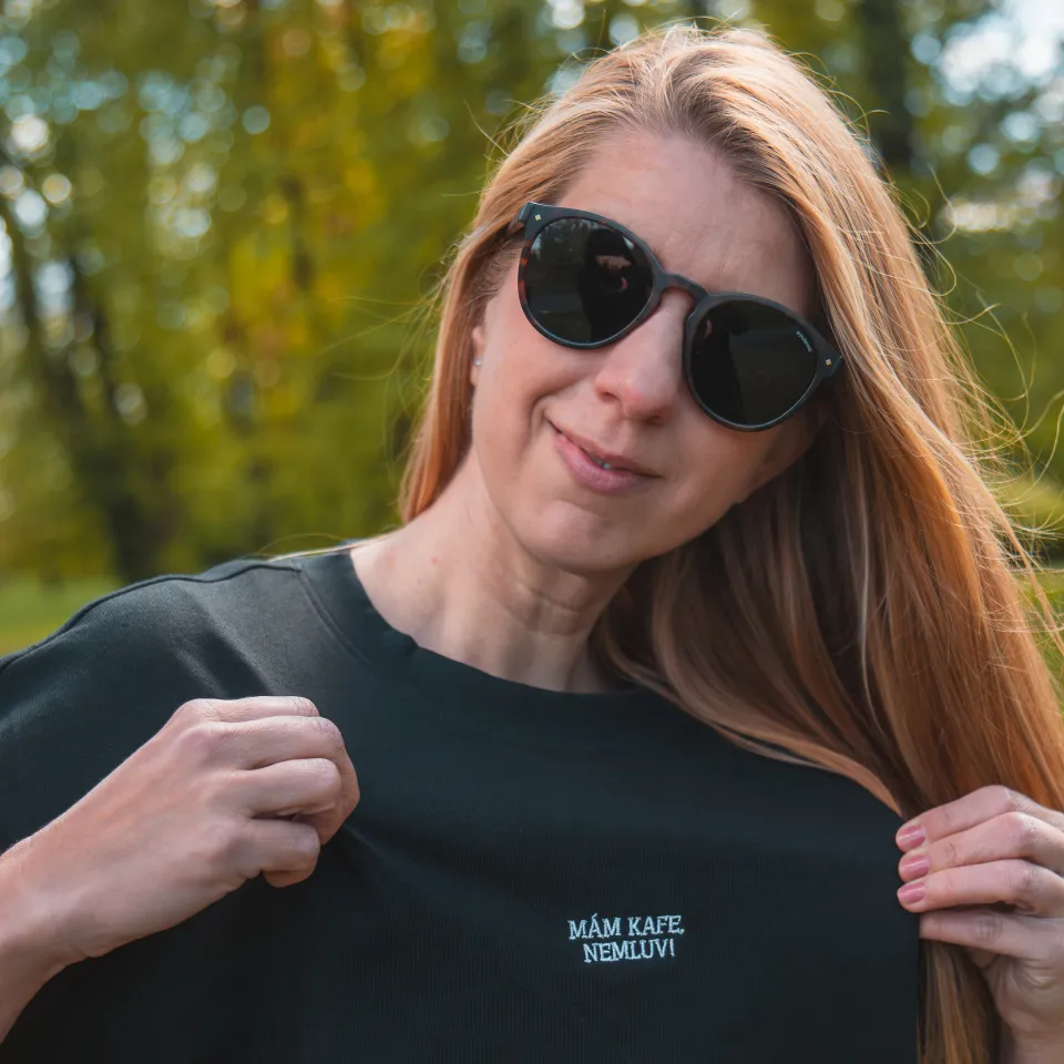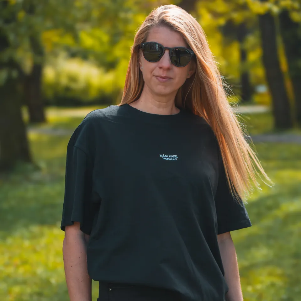 Unisex oversize tričko s výšivkou „Mám kafe nemluv“ je pro chvíle, kdy je všechno jasné. První doušek, klid a žádné zbytečné řeči. Volnější střih zajišťuje pohodlí a ležérní styl na každý den.