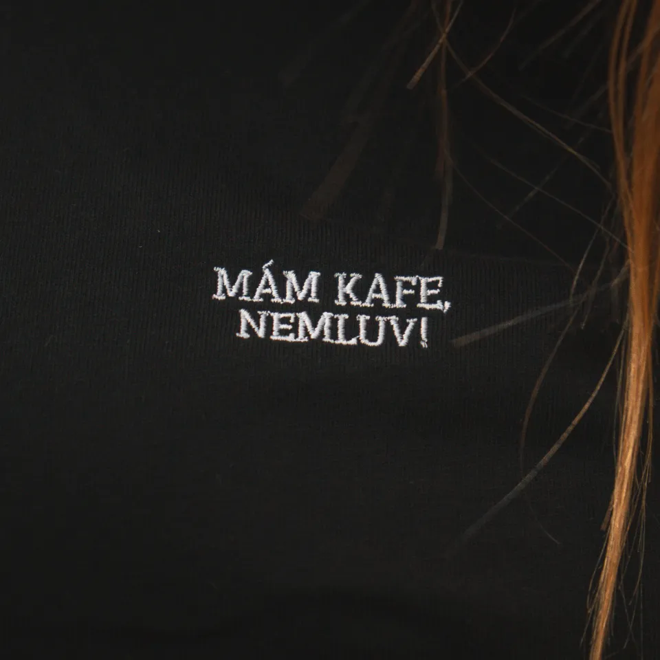 Příjemná bavlna a jemná výšivka dělají z trička kousek, který vystihuje náladu líp než slova. Stačí kafe.